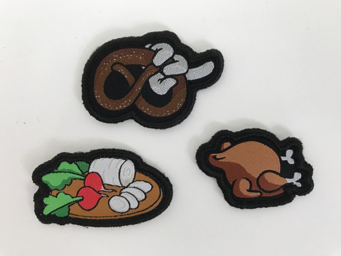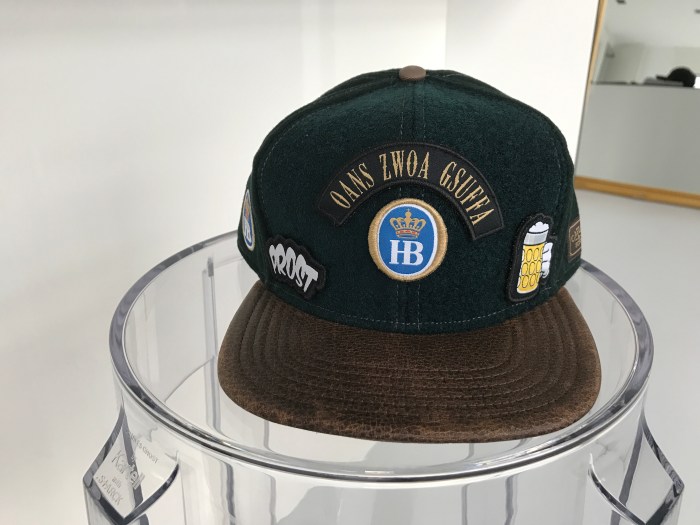The snap back cap comes in green brown lederhosen style and different stickers to change the design. Definitely a fun thing.