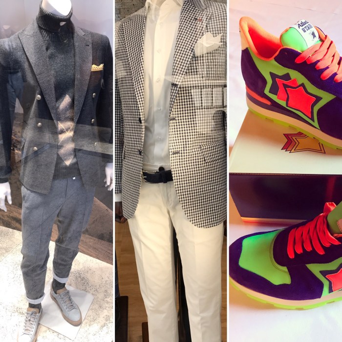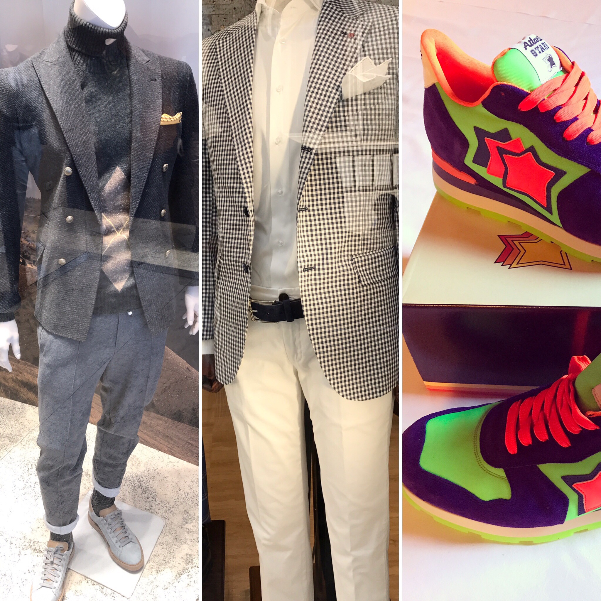 Ginger, Aloe & Wolf, Mag, Franchi (Moschino and more), Dolci, Dixie (for her) and right across Sartorio Rossi suits for him.