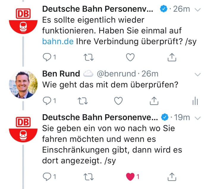 Btw: “Thank you for traveling Deutsche Bahn” is often used with sarcasm here in Germany. But their response time is pretty fast.